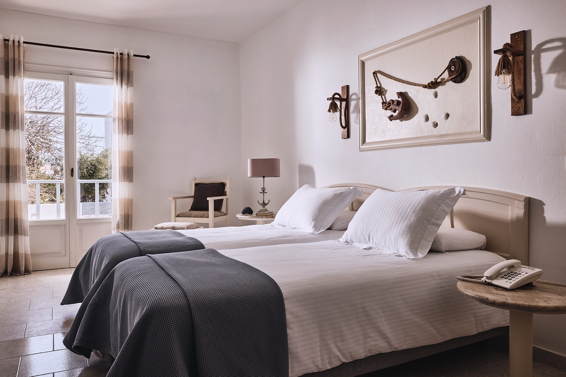 1 διπλό κρεβάτι ή 2 μονά κρεβάτια